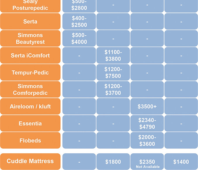 SWEET DREAMS SERTA MATTRESS COMPARISON CHART 1-866-799-0048 ...